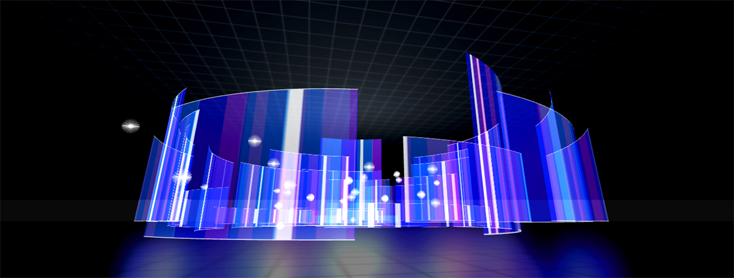Fué integramente desarrollada en WebGL y Three.js. Actualmente nos encontramos explorando posibilidades en la simplificación de la interfaz de programación para usuarios no especializados y creando una página web del proyecto. Dentro de los próximos meses liberaremos el código base para que otros artistas puedan generar sus propias obras inmersivas, utilizar el auditorio virtual dentro de sus webs o bien seguir desarrollando ampliaciones del proyecto.